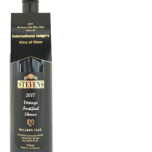 Winner of the prestigious International Judge’s Wine of Show Trophy at the 2017 McLaren Vale Wine Show. To quote Graham, “This wine is what Shiraz should taste like”, in the classic fortified style. Masses of luscious Shiraz flavours in a wine that you could eat with a knife and fork. One of its many unique features is that in the production no wood maturation is used and it achieves all its aged characters in the bottle using the hand selected, rich fruit picked from the Stevens Estate Vineyard. We are now offering a “Limited Release” of this wine.